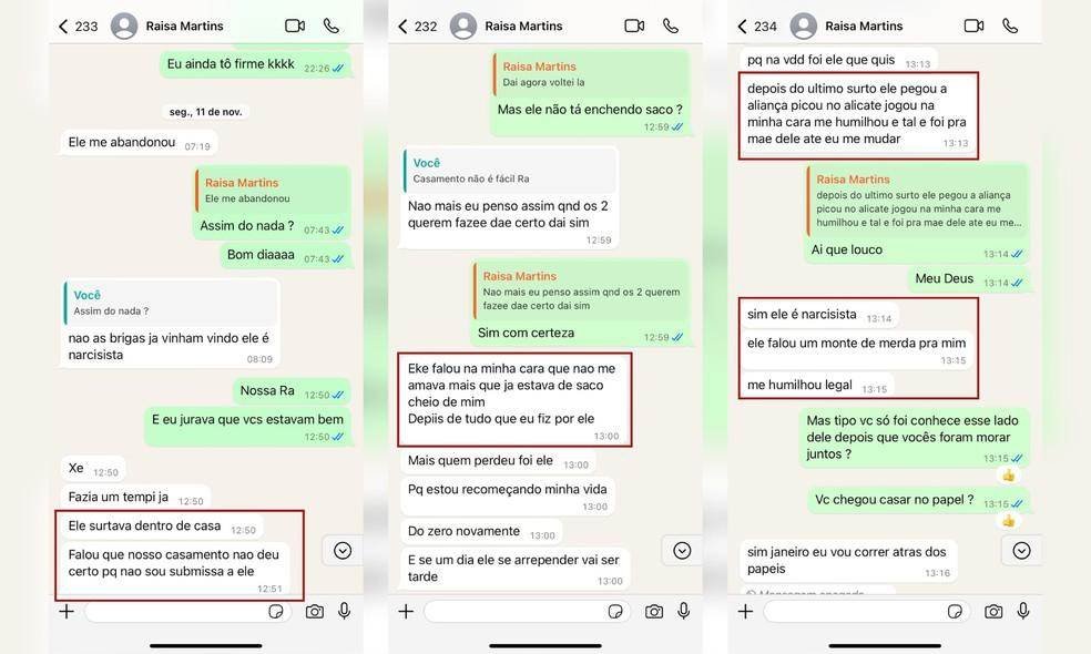 Antes de ser assassinada, Raísa confidenciou a uma amiga as humilhações e o sofrimento que vivia em seu casamento. Seus relatos mostravam claramente os sinais de um relacionamento abusivo, marcado por manipulação e violência psicológica.